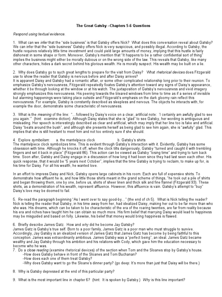 Respond Using Textual Evidence The Great Gatsby Chapters 5 6 Questions Pdf The Great Gatsby