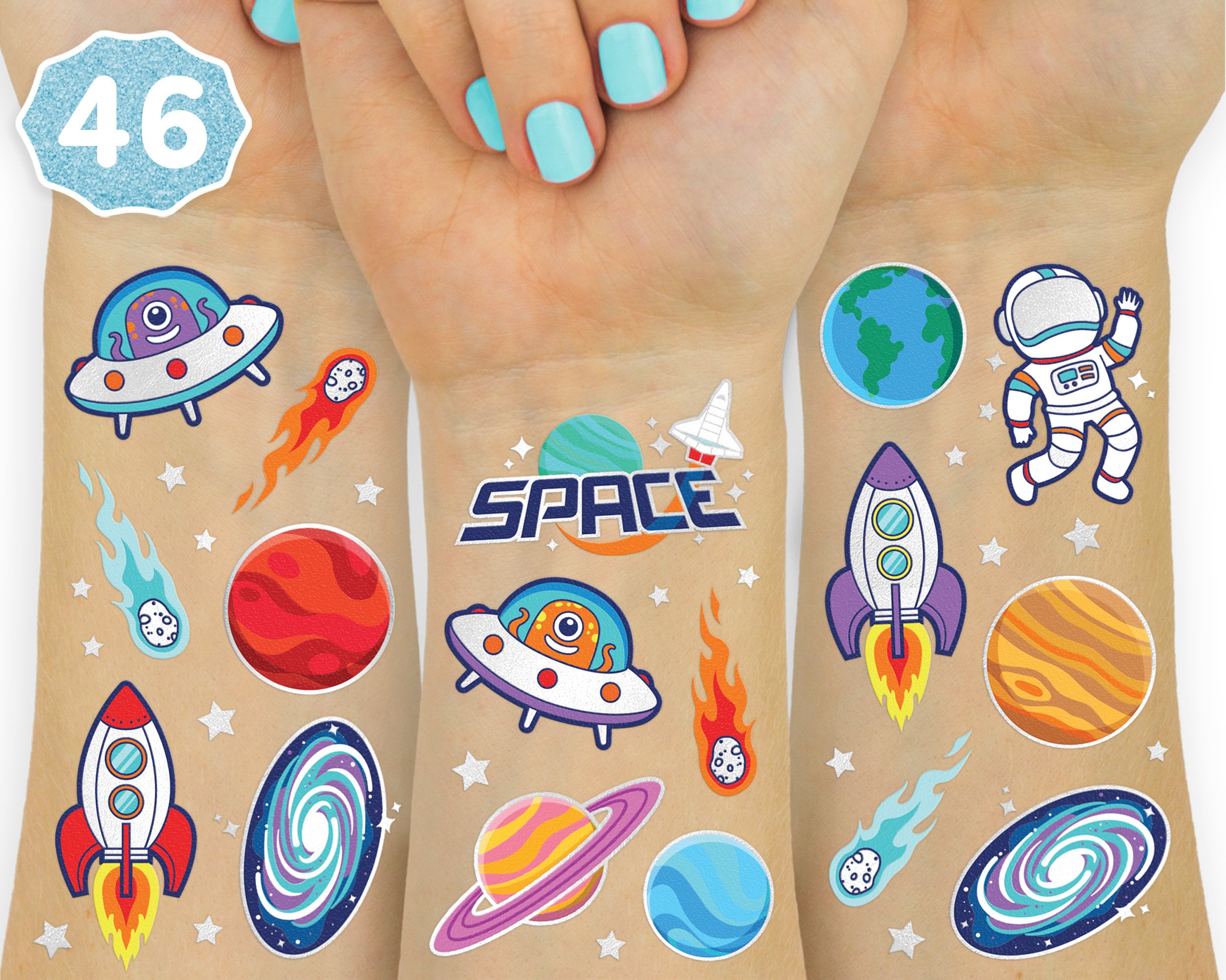 Buy Space Planets Temporary Tattoos For Kids 46 Glitter Styles Online In India Etsy